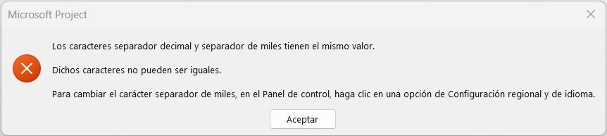 Un error habitual en equipos con múltiples idiomas instalados en Windows, como puede ser el Inglés, Árabe, Español o resto de idiomas incluidos asiáticos, es el error de los caracteres separador decimal y separador de miles tienen el mismo valor en Excel, Project u otras aplicaciones de Office.